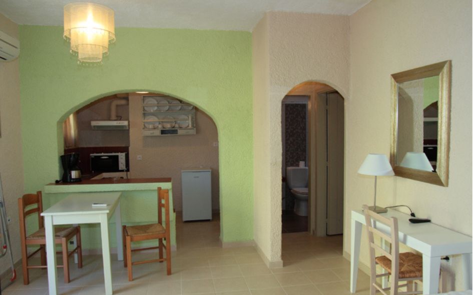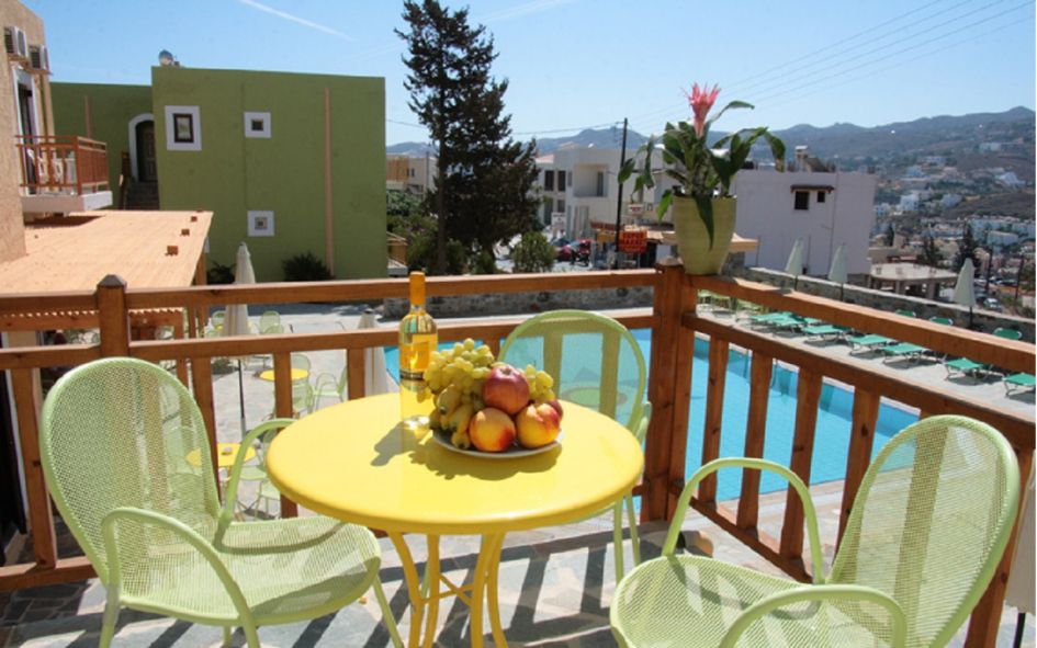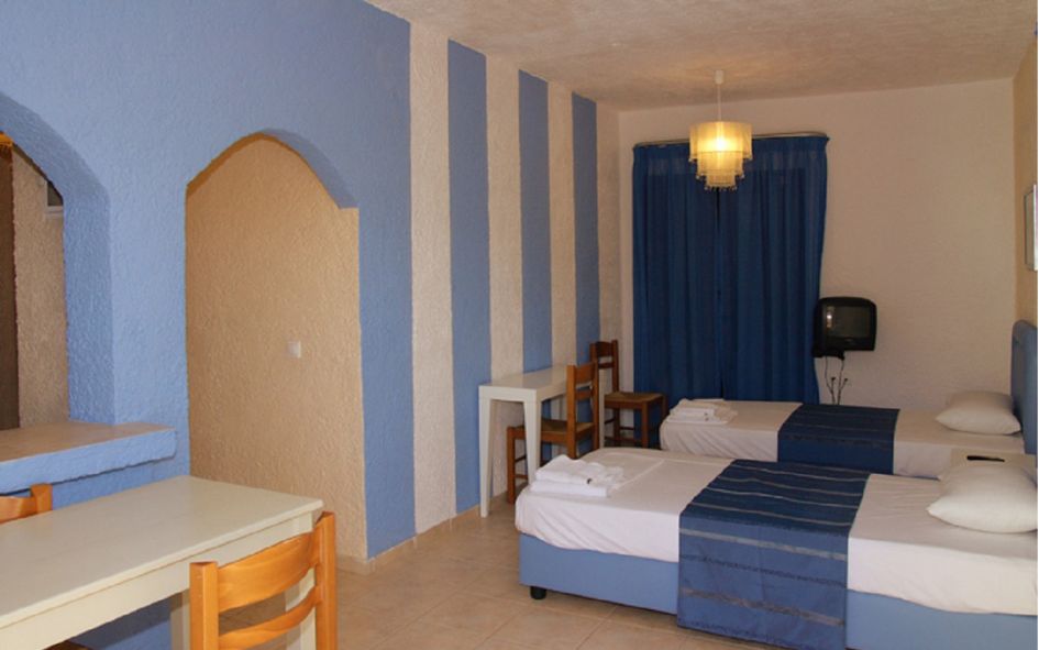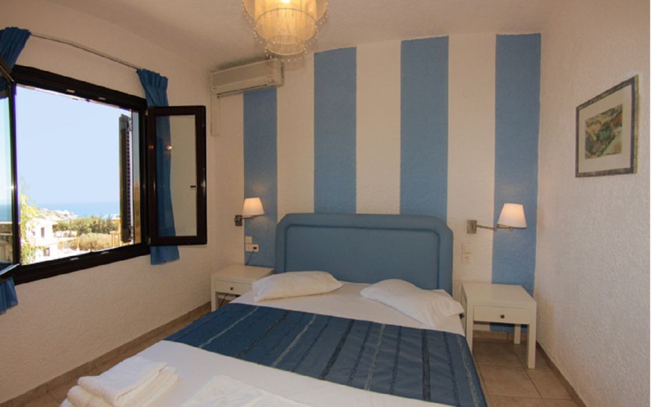 L’ensemble entièrement rénové est composé de 27 appartements répartis sur 3 bâtiments, dans un site calme et agréable, à 17 km d’Héraklion et à 200 m de la plage de galets. Les appartements climatisés peuvent accueillir 2 à 6 personnes. Tous sont équipés d’une kitchenette (réfrigérateur, cafetière, toasteur), SDB (sèche-cheveux), WC, TV, téléphone, balcon, coffre-fort.