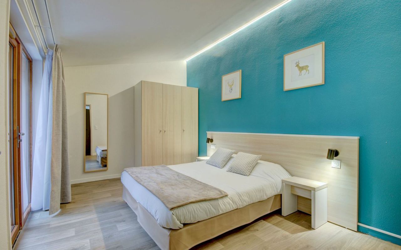 • Cottage 5 pers. (41 m² env) : chambre avec 1 lit double ou 2 lits simples, chambre avec 1 lit simple, 1 lit mezzanine et 1 lit gigogne.