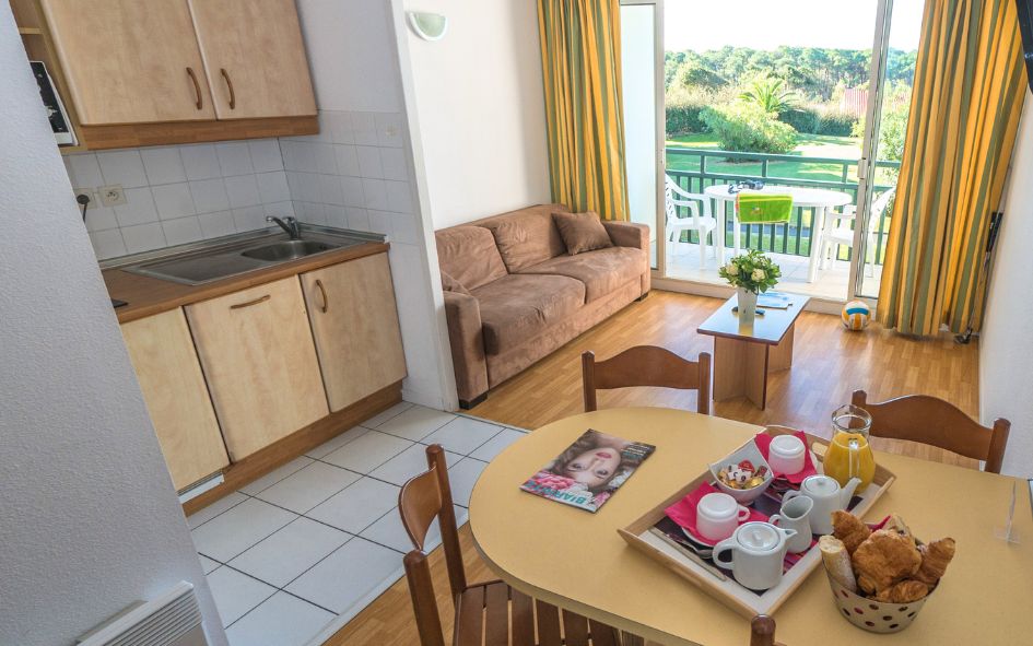 Nichée entre Biarritz et Saint-Jean-de-Luz, la résidence Ilbarritz **** bénéficie d’un emplacement privilégié à 650 m des plages basques. Au cœur d’un parc arboré de 1,5 ha, ses 100 logements répartis dans 3 bâtiments de 2 étages avec ascenseur offrent un cadre idéal pour un séjour alliant confort et nature. Le centre de Bidart se situe à 2,8 km, tandis que celui de Biarritz n’est qu’à 4,6 km. Tous les appartements disposent d’un coin cuisine (2 plaques vitrocéramiques, réfrigérateur, micro-ondes/grill, lave-vaisselle, grille-pain, bouilloire et cafetière électrique), TV, SDB/WC séparés. Terrasse ou loggia avec mobilier de jardin.