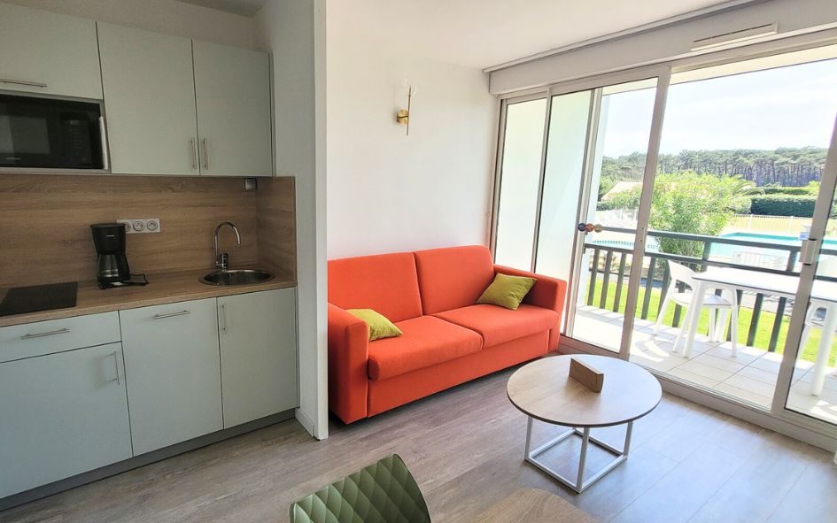 • App 2P 4 pers. (31 m² env.) :séjour avec un canapé convertible (160x200) ou 2 banquettes lits 1 place (80x200). 1 chambre avec 1 lit double (150x200).