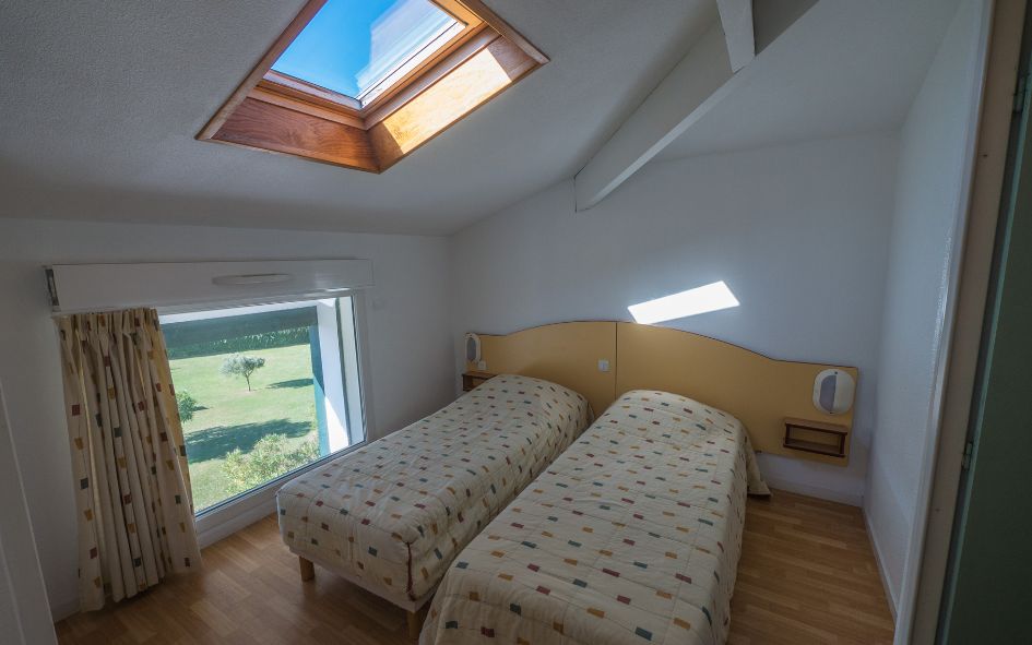 À l’étage : 1 chambre avec 1 lit double (150x200), 1 chambre avec deux lits simples (90x200).