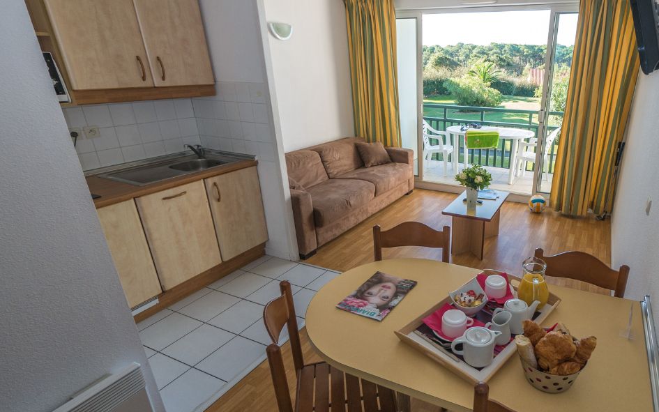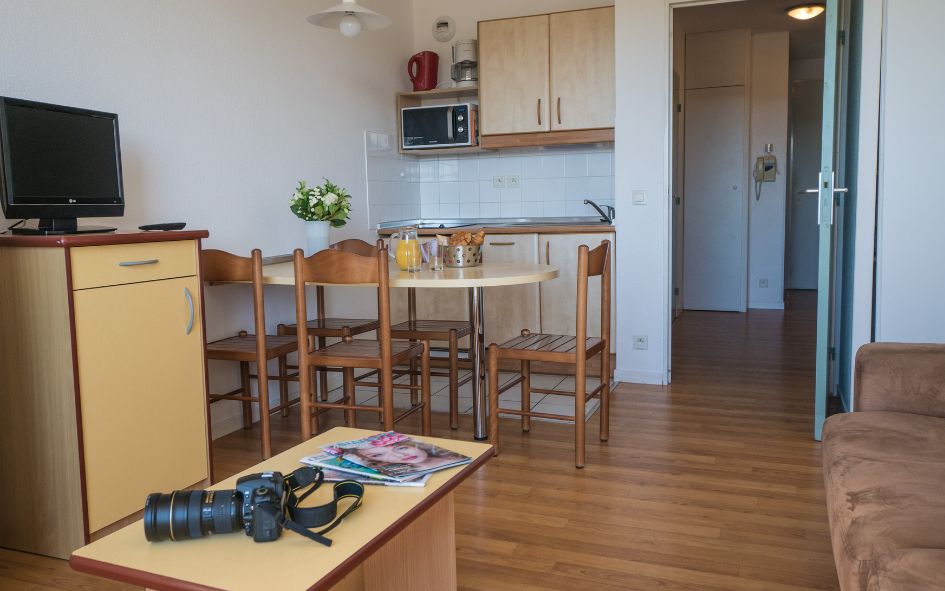 • App 2P 4 pers. (31 m² env.) : séjour avec un canapé convertible (160x200) ou 2 banquettes lits 1 place (80x200). 1 chambre avec 1 lit double (150x200).
