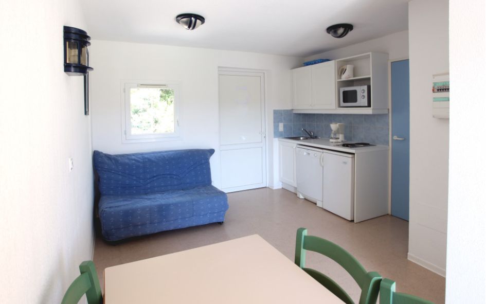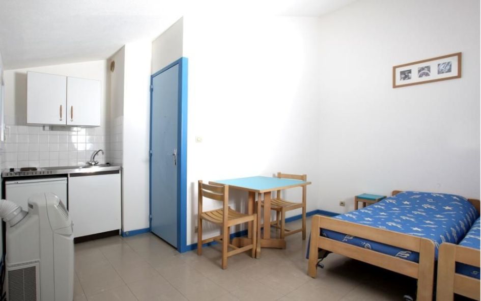 • Appartement 5 pers. (28 à 30 m²) : 1 pièce avec 1 grand lit, kitchenette, SDD/WC, 1 chambre avec 1 lit simple + lits superposés*.