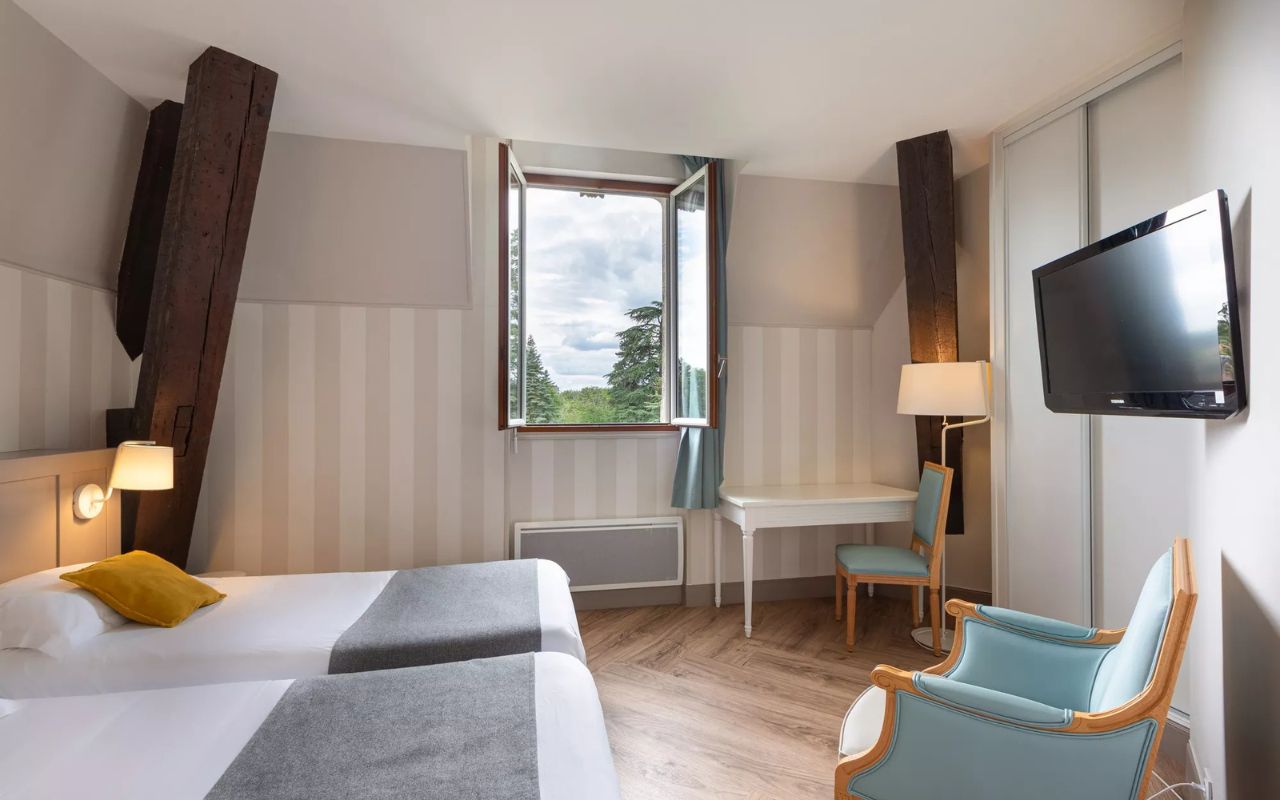 Cet élégant château en bordure de Sologne est situé dans un parc arboré de 17 hectares. Ce domaine se compose de 58 chambres de 1 à 6 pers. et à 300 m du château, 10 chalets d’environ 46 m² de 3 à 6 pers. Climatisés.