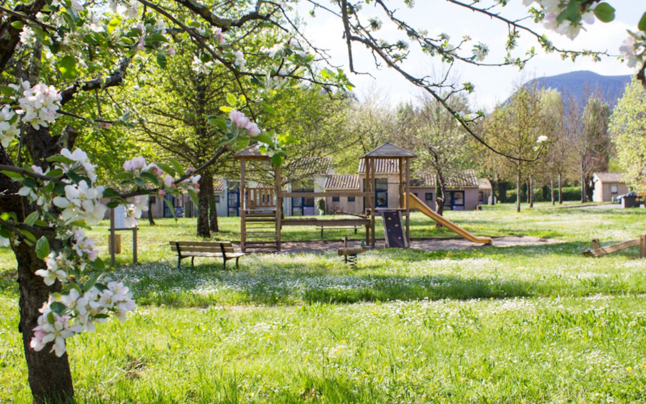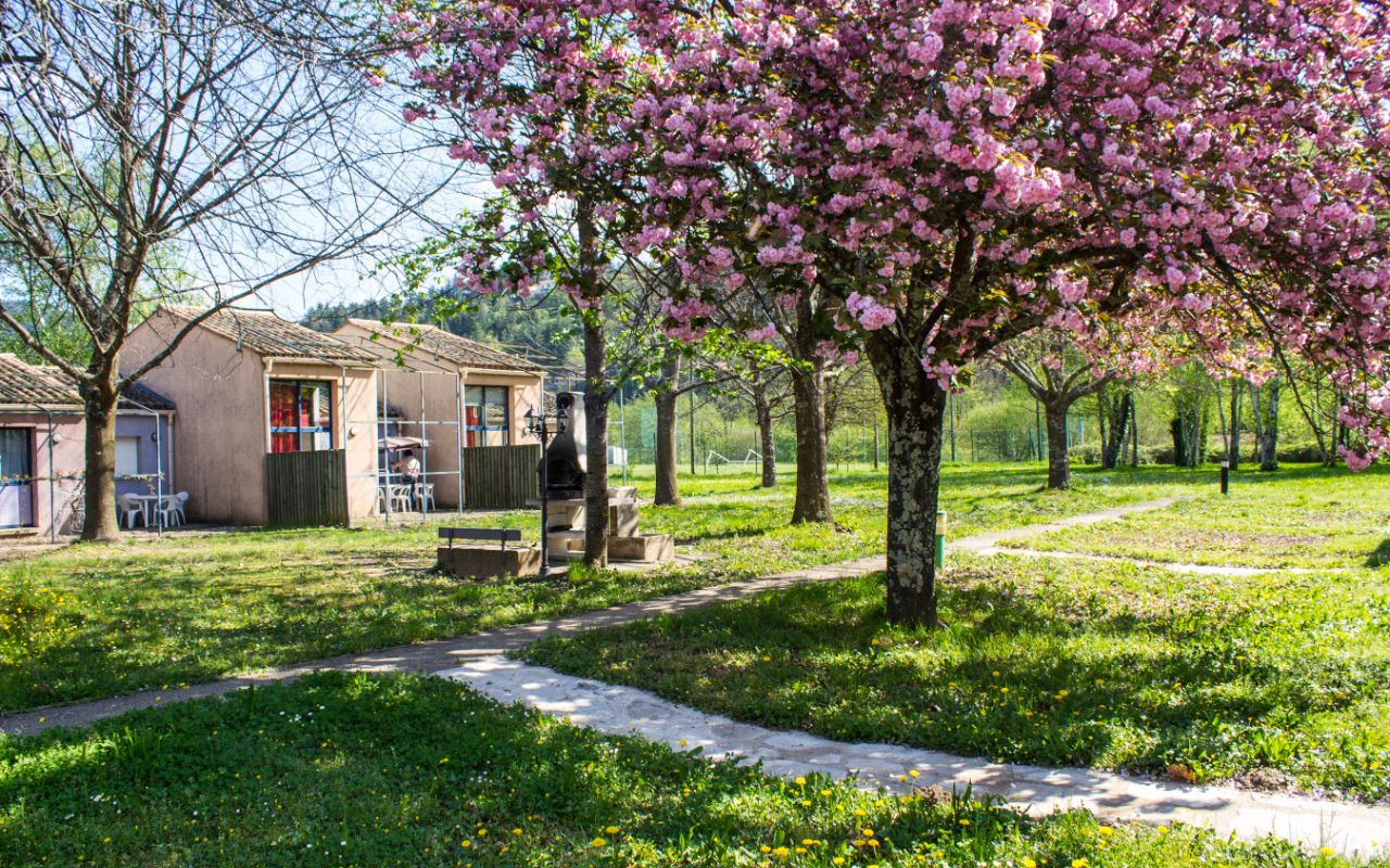 Située à 1 km de la ville (15 min de marche par un sentier ombragé) et des premiers commerces, la résidence regroupe 37 gîtes de 2 à 8 personnes au cœur d’un parc ombragé de 3 ha. Chaque gîte dispose d’un coin cuisine (micro-ondes, cafetière, plaques, frigo/congélateur), d’une SDD, de WC, d’une TV et d’une terrasse avec salon de jardin. Barbecue collectif à proximité.