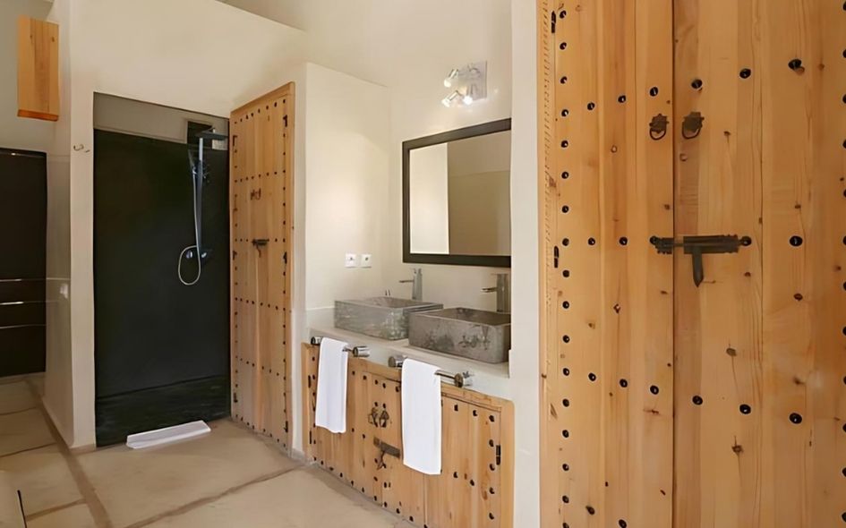 Une parenthèse d’exception à Marrakech, dans une villa spacieuse avec piscine privée, entourée de verdure et pensée pour accueillir jusqu’à 8 personnes. Profitez d’un cadre paisible, de grands espaces de vie et d’une cuisinière sur place pour savourer pleinement les saveurs marocaines.