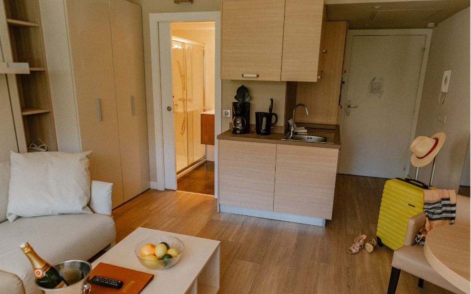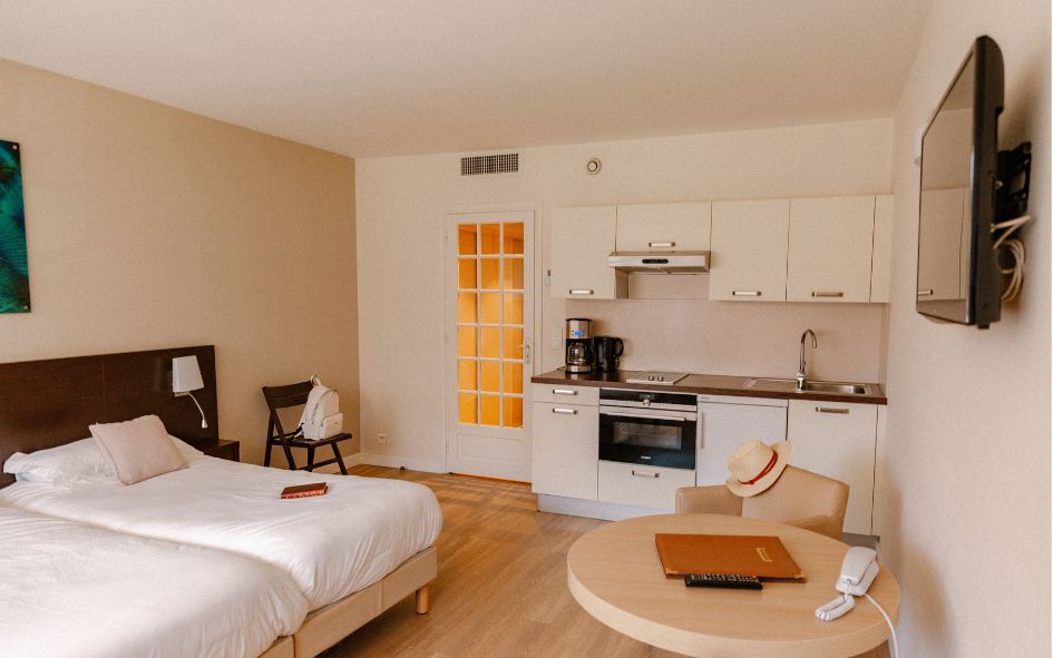 • Studio 1/2 pers. (20 m² env.) : avec couchages pour 2 personnes.