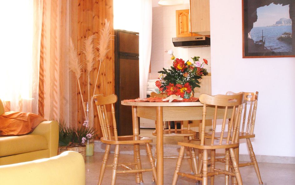 La résidence surplombe le golfe de Palerme avec un accès direct à la crique (publique) par escaliers, paliers aménagés, ou en bateau par la mer. Les appartements sont tous équipés d'un coin cuisine avec réfrigérateur, plaques de cuisson, machine à laver, télévision satellite, climatisation et balcon. Les terrasses en RDC sont aménagées de tables, chaises et transats. Les appartements du 1ᵉʳ étage (1 seul étage) peuvent profiter des transats dispersés dans le jardin tropical.