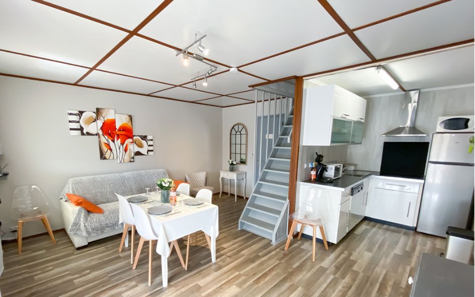 • T3 maison 4/6 pers. (53 m² env.) + terrasse 12 m² : RDC : séjour avec un convertible couchage 2 pers., SDD + WC.