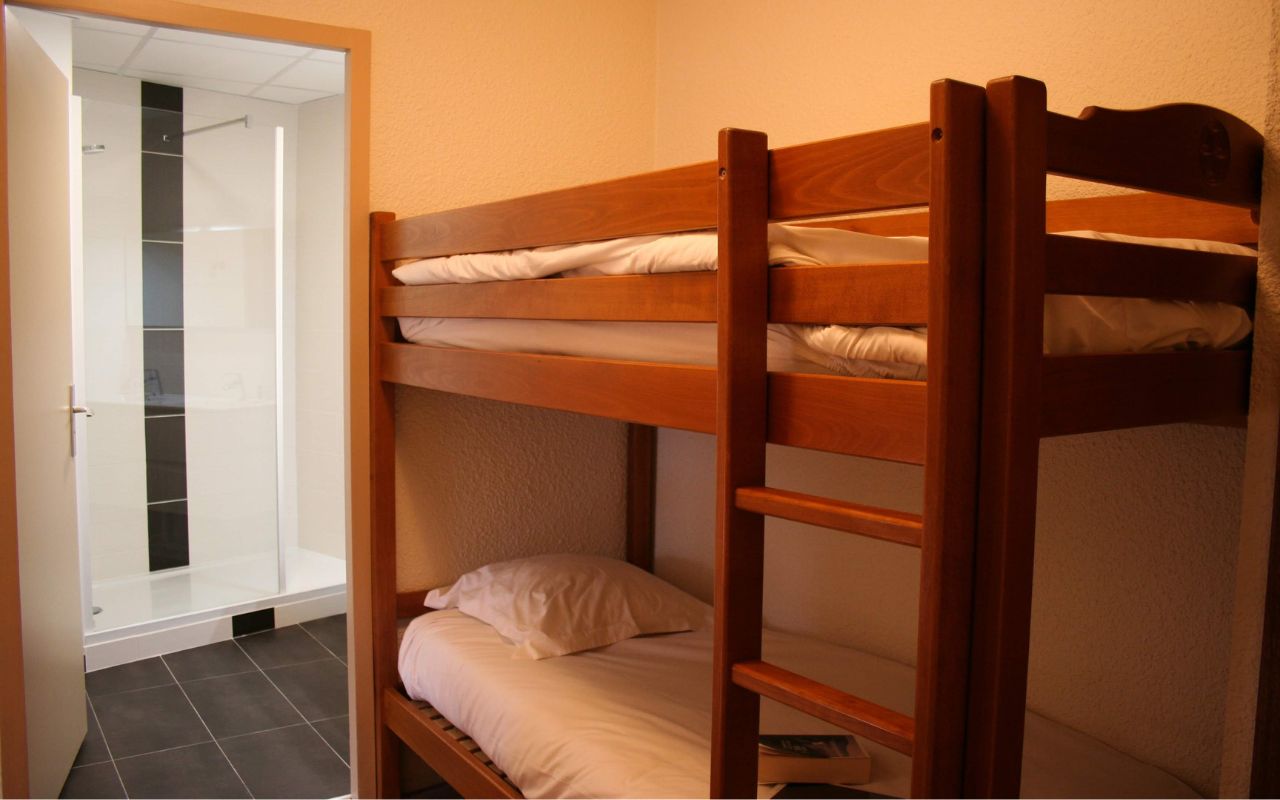 • Chambre familiale 4 pers. (30 m² env.) : 1 lit double (160x200) et 2 lits superposés*.