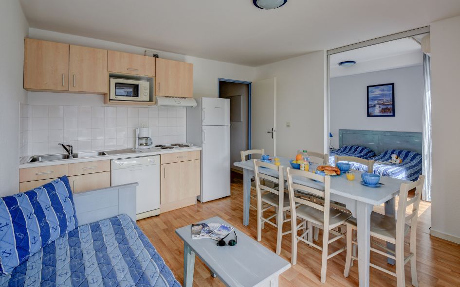 • 2P 4 pers. (29 m² env.) : séjour avec banquette-lit gigogne 2 places, TV avec TNT. 1 chambre avec 1 lit double.