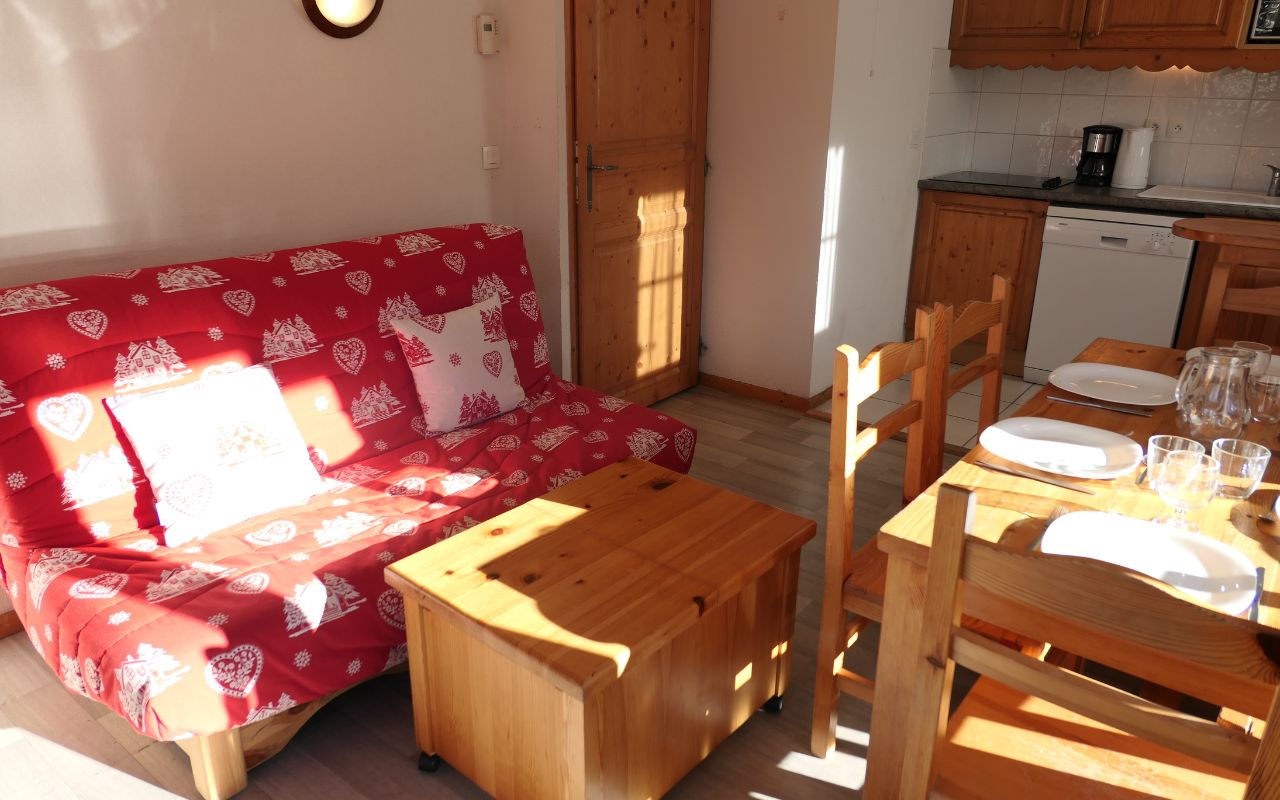 • 2P 4 pers. (32 m²) : un séjour avec un canapé convertible, chambre avec 2 lits simples.