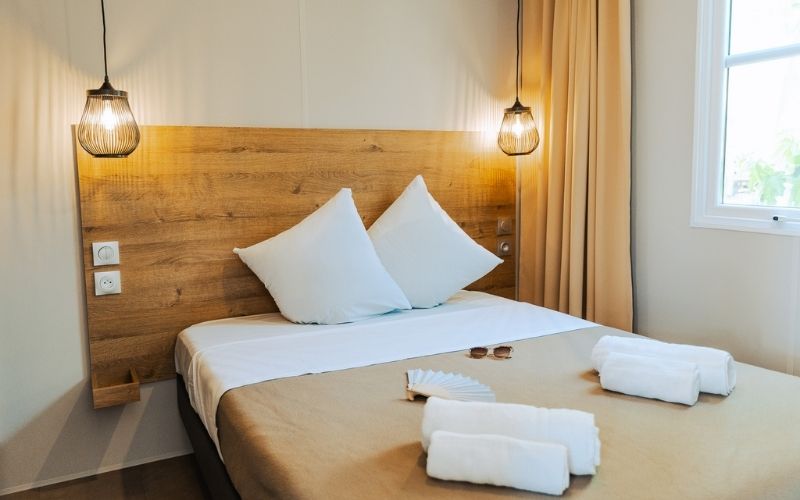 • Cottage Prestige 2 CH 4 pers. (34 m²) : 1 chambre avec 1 lit double (160), 1 chambre avec 2 lits simples (80). 2 SDD/2 WC.