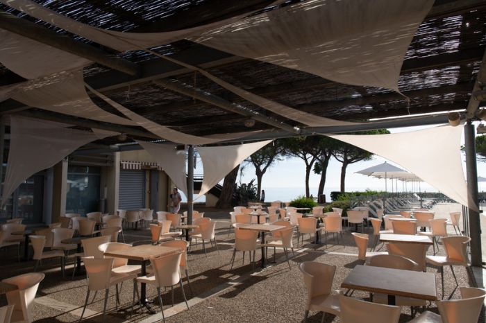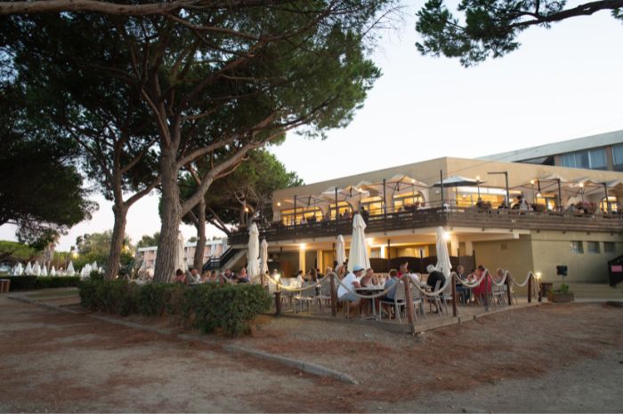 Pension complète ou demi-pension (vin compris aux repas) : 1 restaurant avec terrasse extérieure et vue panoramique sur la mer (buffet) et 1 bar intérieur avec grande terrasse bordant la piscine.