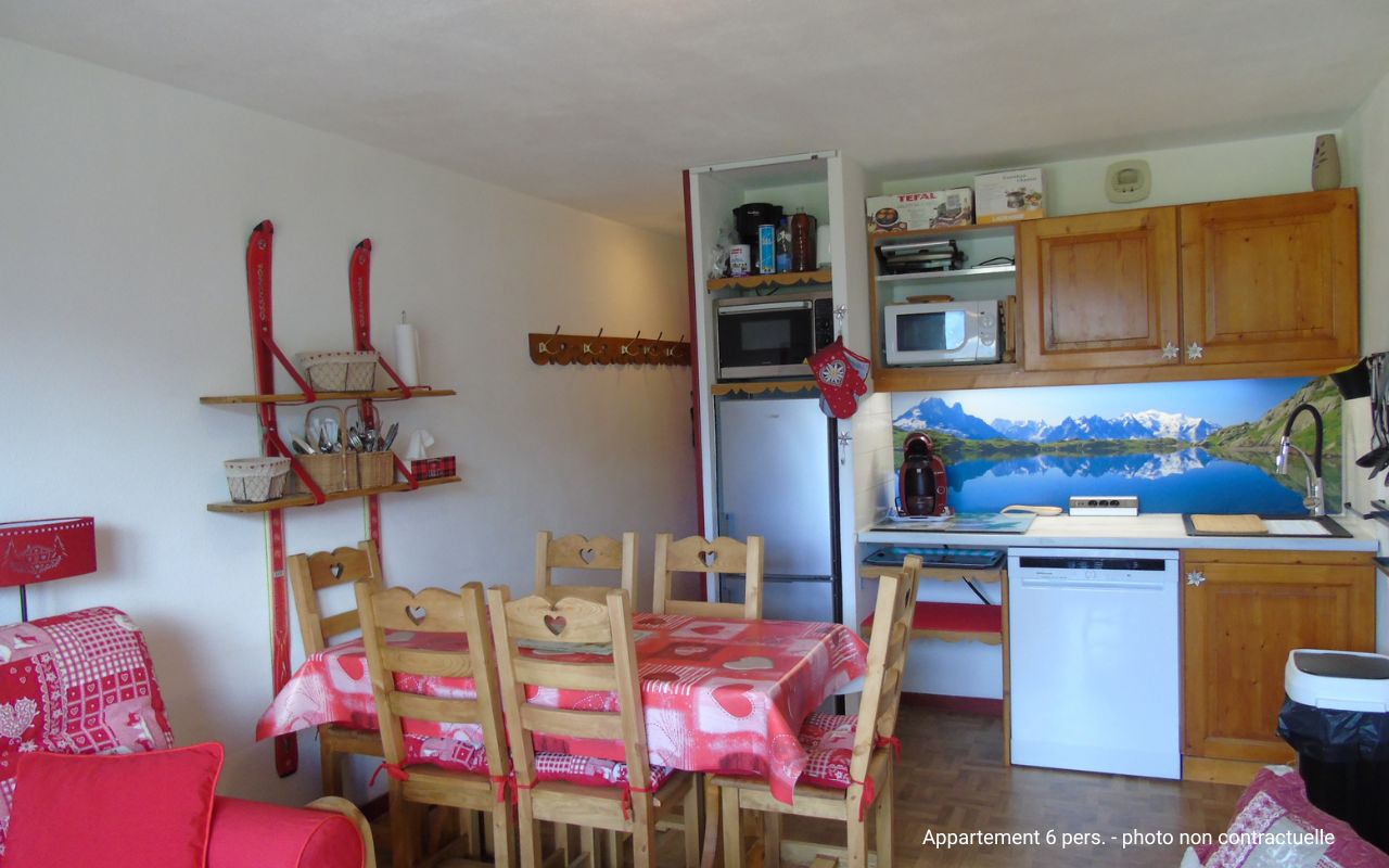 • Appart. 6 pers. (33-36 m²) : séjour avec canapé-lit gigogne 2 pers. 1 cabine ou coin nuit avec lits superposés*, 1 chambre avec 1 lit double ou 2 lits 1 pers.