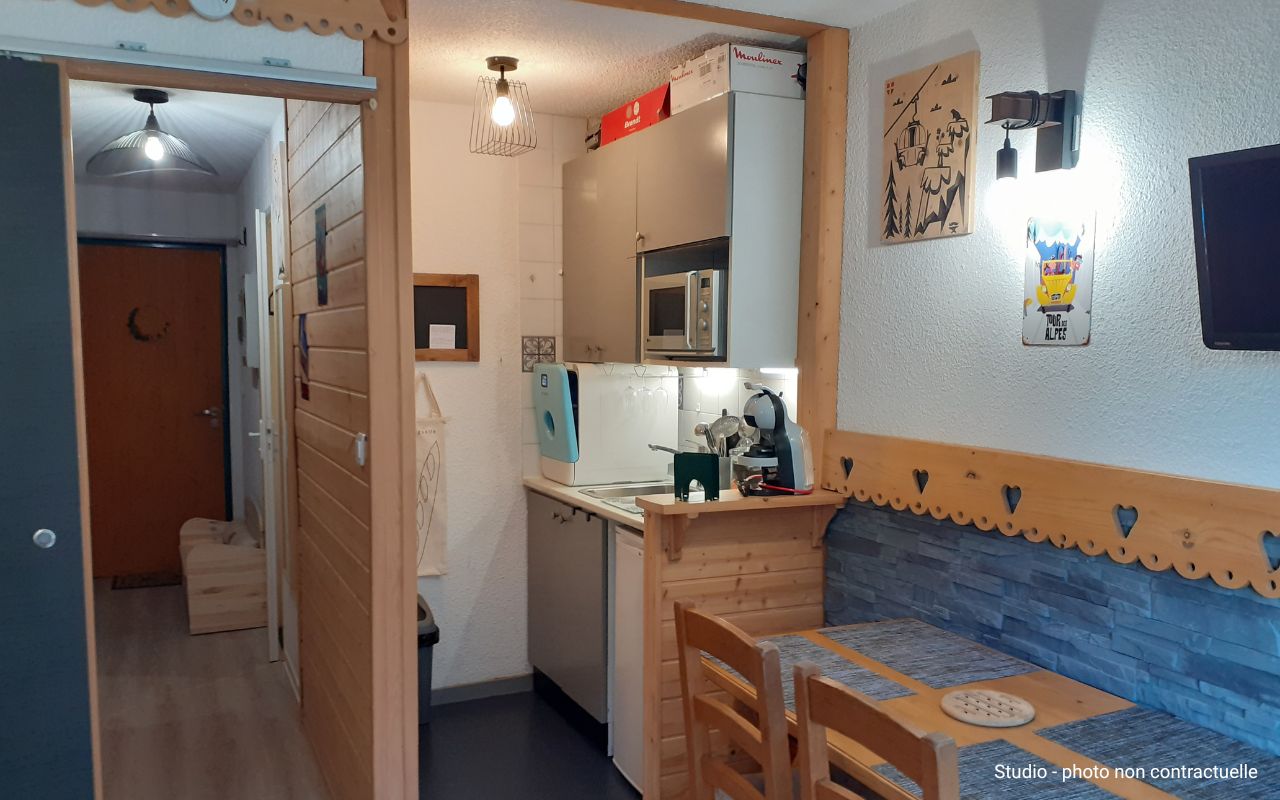 • Studio 2/3 pers. (19-20 m²) : entrée avec 1 lit 1 pers., séjour avec canapé lit gigogne 2 pers. ou clic-clac.