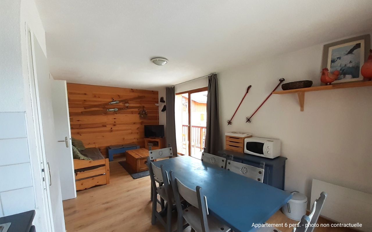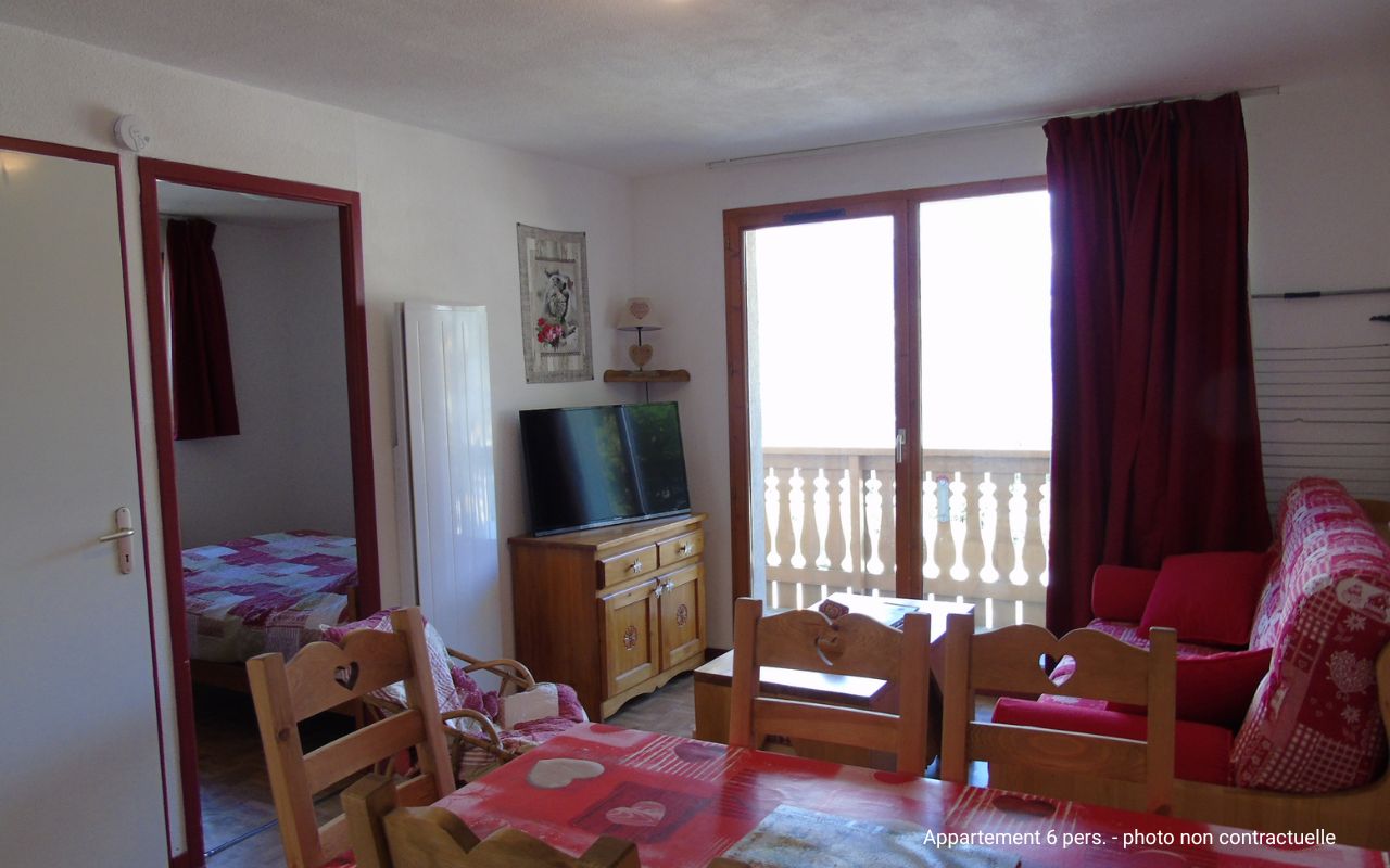 Les résidences chalets sont bien intégrées dans un environnement offrant un panorama exceptionnel sur le Parc de la Vanoise, au cœur du Massif du Thabor. Les hébergements sont répartis dans toute la station à 500 m maximum des commerces et des pistes. Ils sont composés d’un coin cuisine (four ou micro-ondes, frigo, plaques de cuisson, lave-vaisselle en fonction des logements, cafetière), SDB ou SDD, WC, TV, balcon ou terrasse.