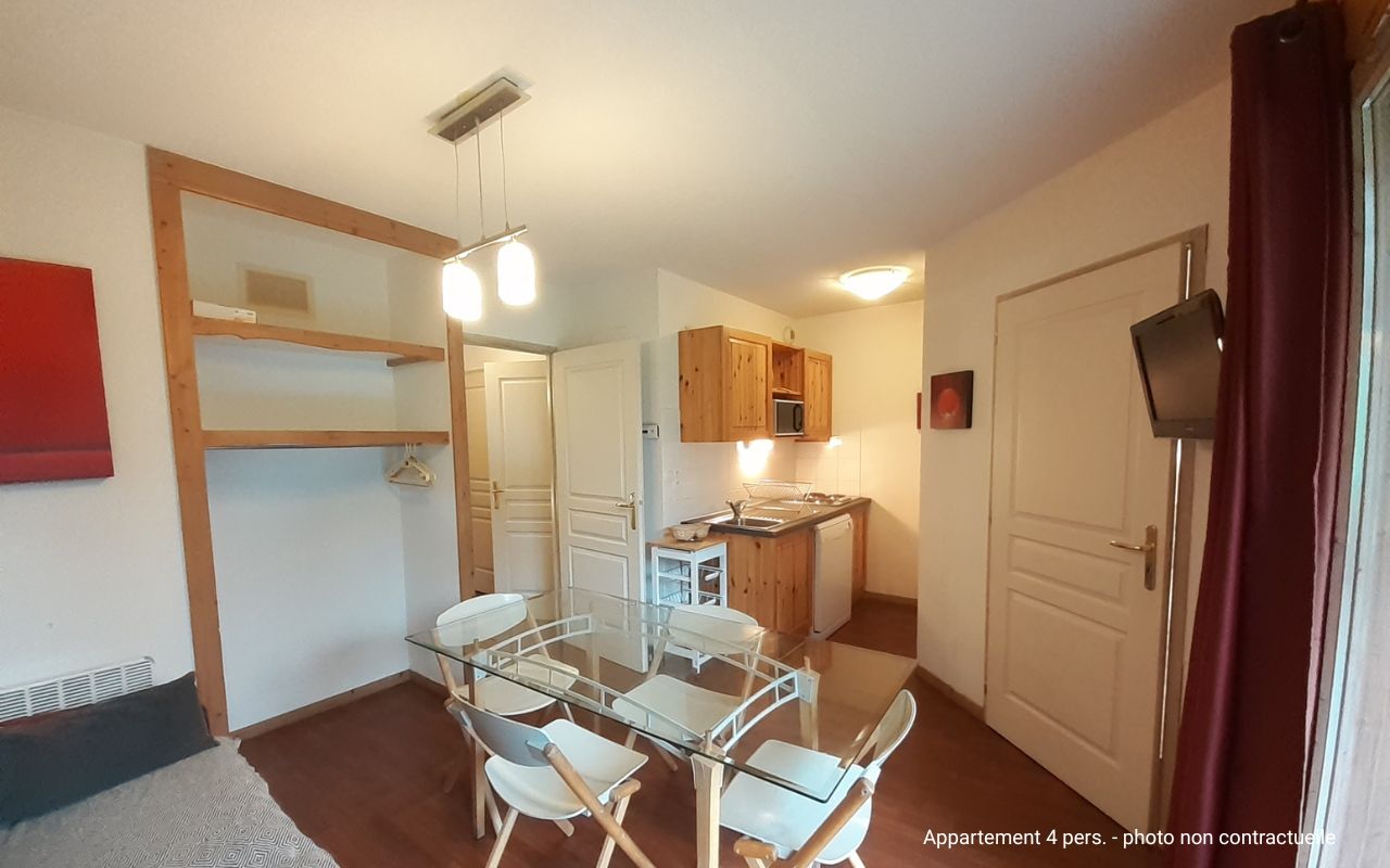 • Appart. 4 pers. (26-35 m²) : séjour avec canapé-lit gigogne 2 pers. ou clic-clac, 1 chambre avec 2 lits.