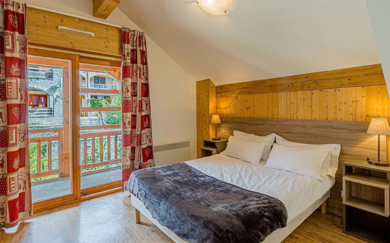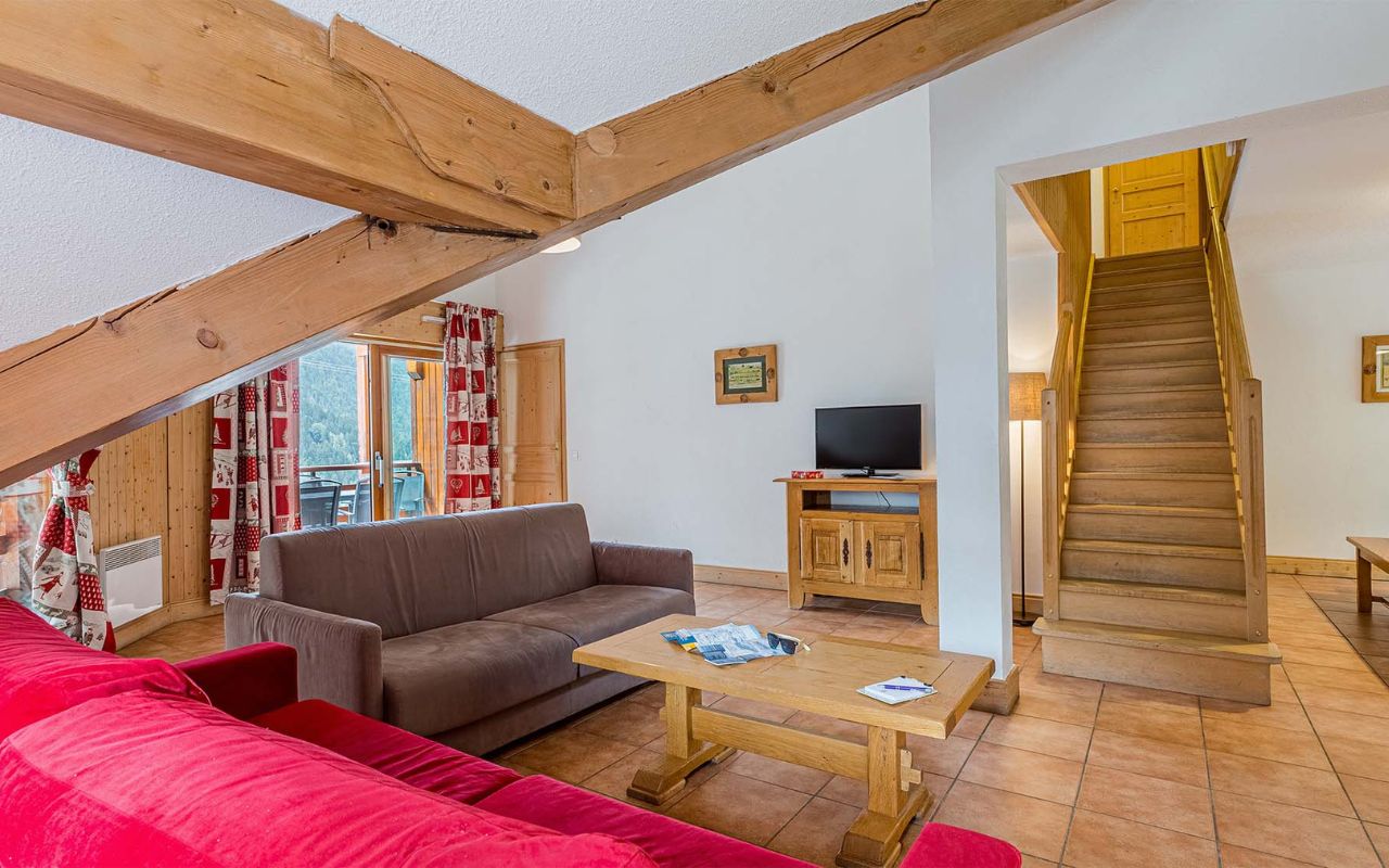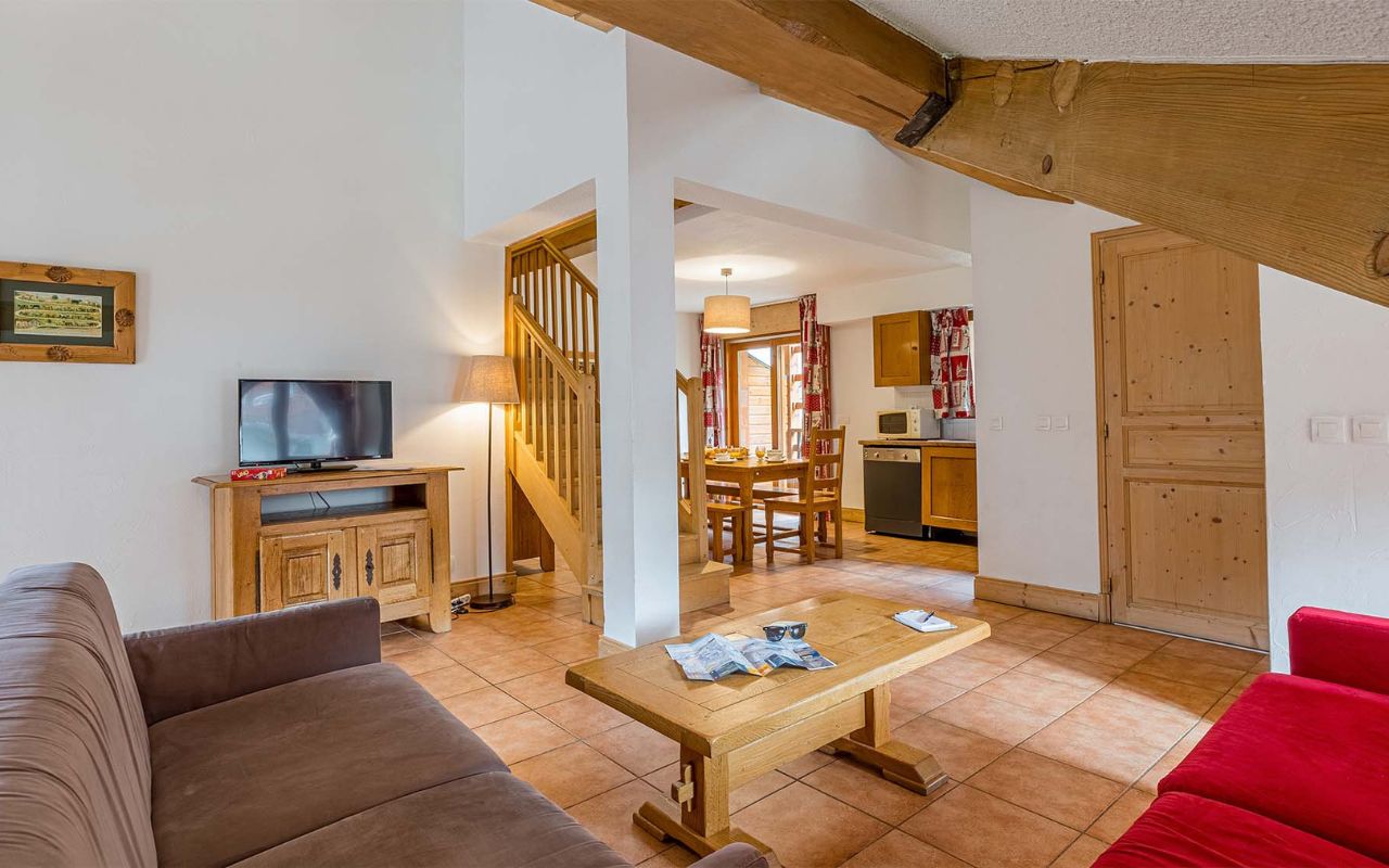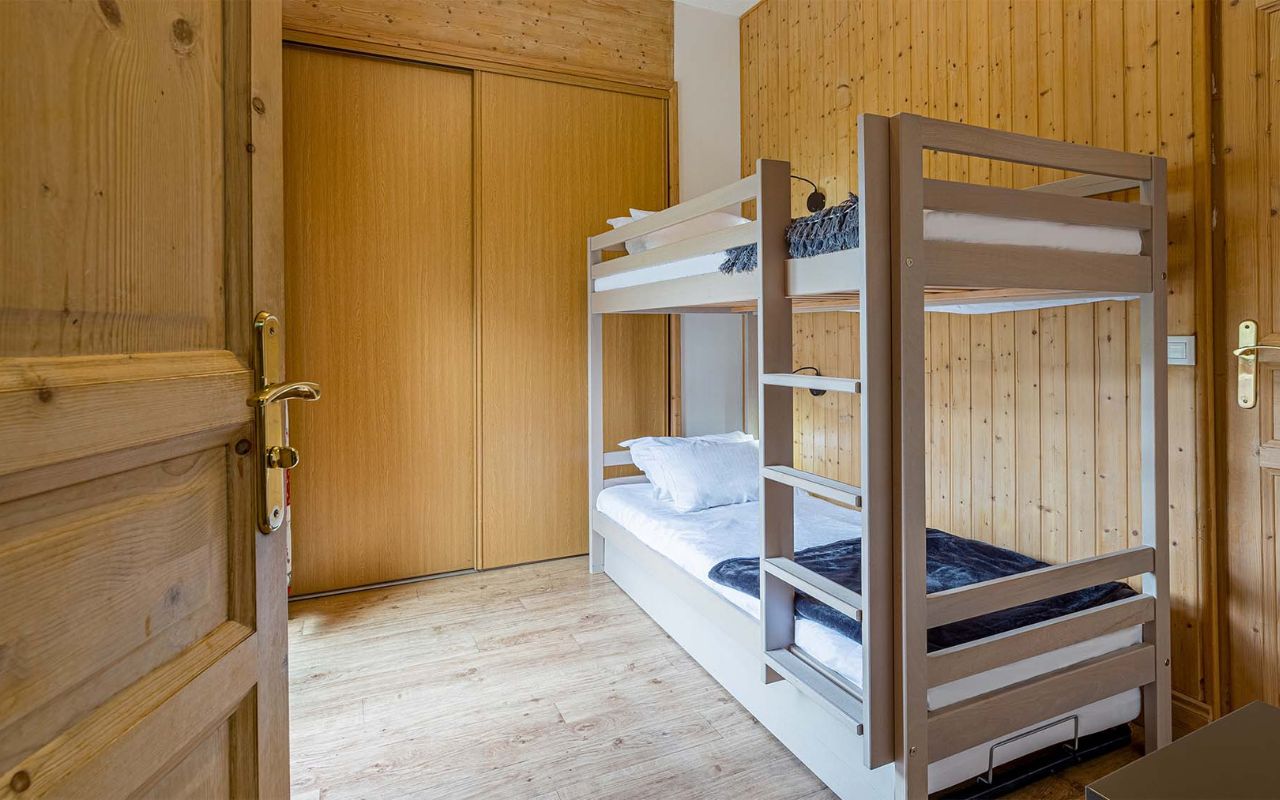 • 2PK 6/8 pers. (env. 73 m²) ou 3P coin montagne 6/8 pers. : séjour avec canapé-lit, 1 chambre avec 1 lit double et 1 chambre avec 2 x 2 lits superposés* OU 1 chambre avec 1 lit simple et 2 coins cabine avec 2 lits superposés*.